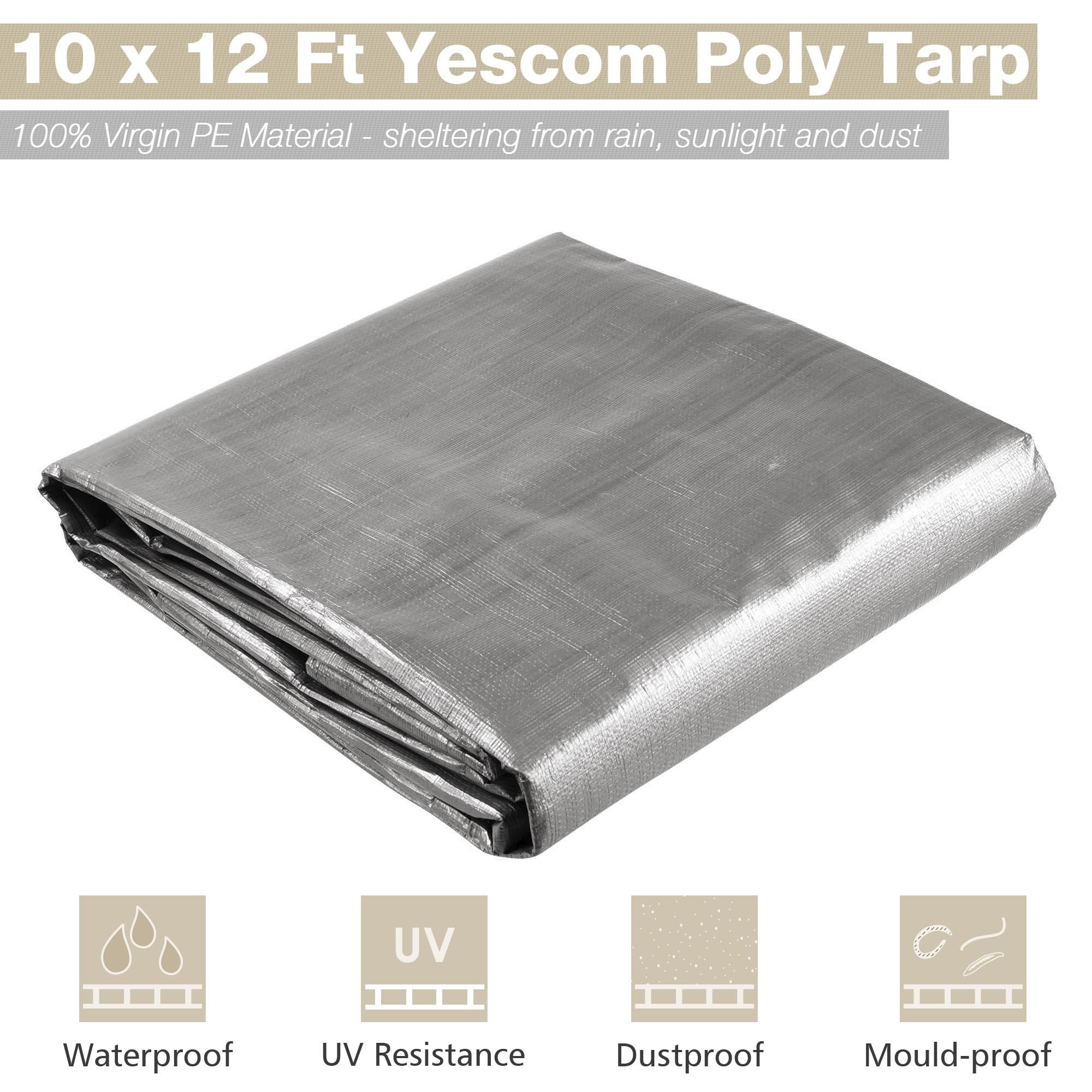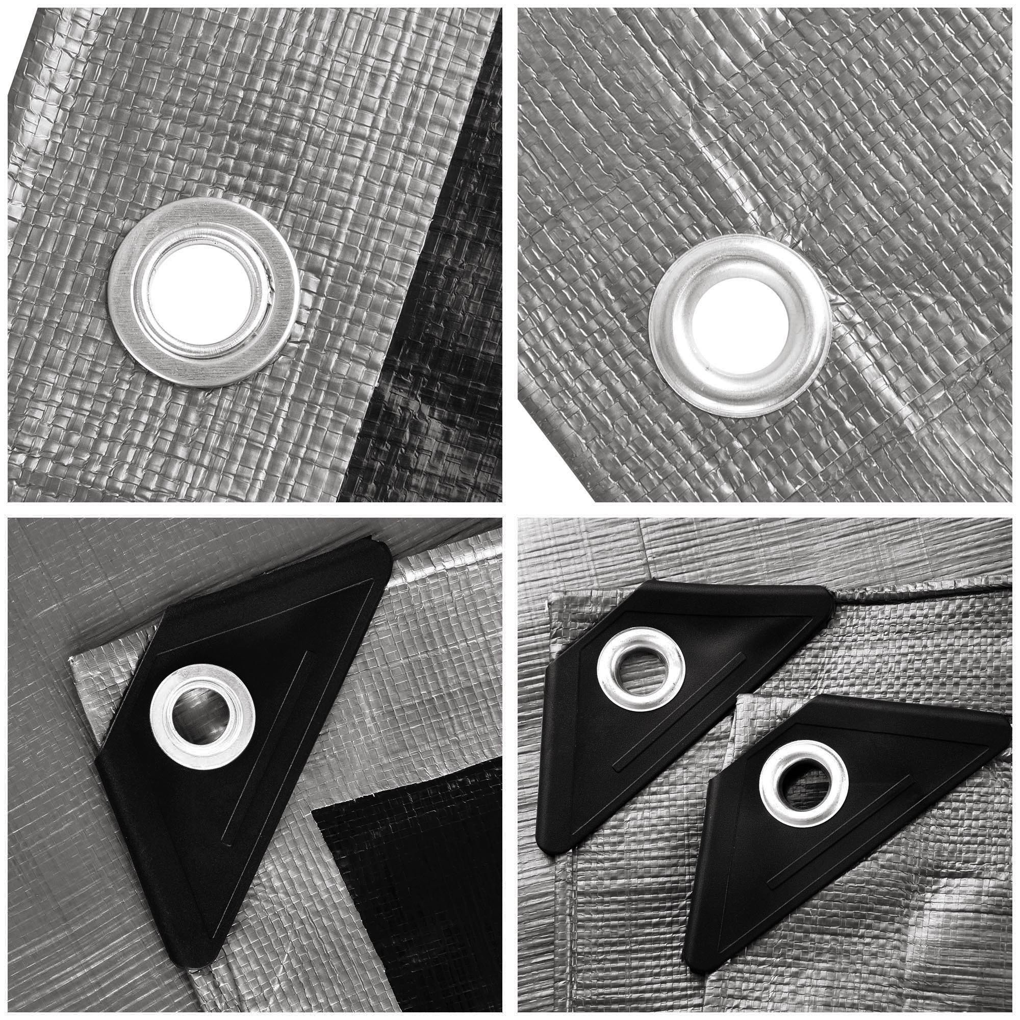- Heavy Duty Sturdy Poly Tarp - Weights 4.06Lbs; 10mil heavy-duty thickness and aluminum grommets in 3 1/4 ft (1m) interval for better tear-resistance; PP plastics capped reinforced corners with grommets for sturdy construction; All seamless edges avoid water leakage